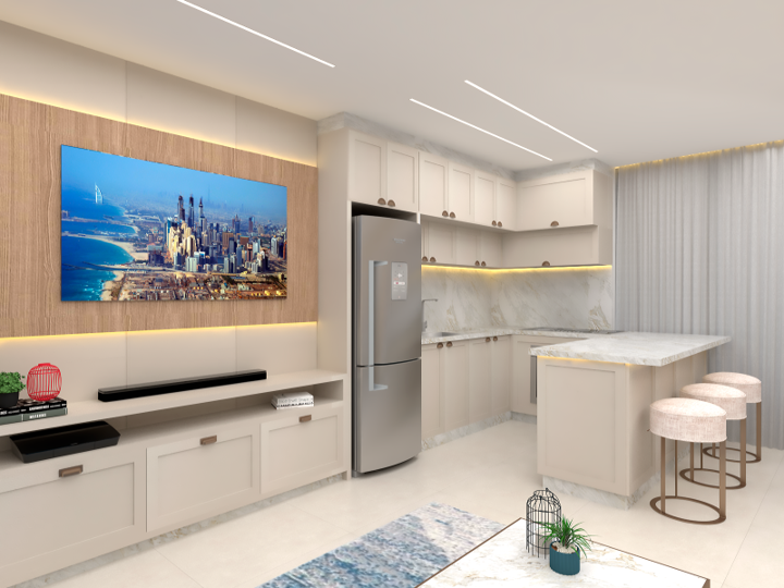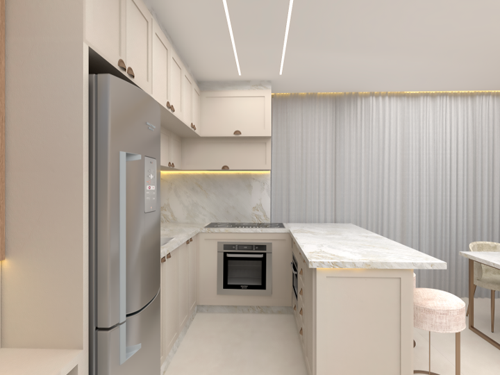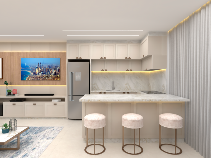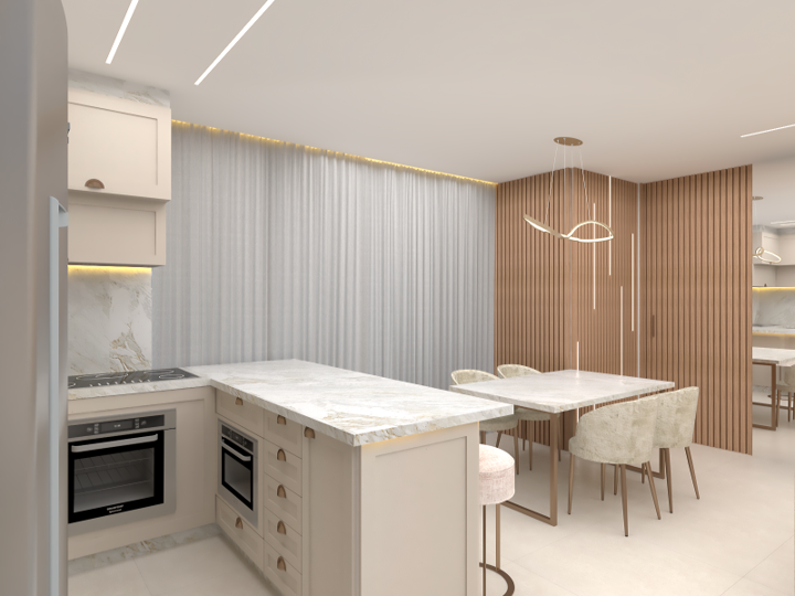 Um apartamento clássico moderno que harmoniza elementos tradicionais e contemporâneos em sua decoração e design. Este estilo mescla características clássicas, como molduras ornamentadas, móveis elegantes e detalhes refinados, com um toque moderno e atualizado. Esse foi o desejo de nossa cliente: incluir cores neutras, linhas limpas, materiais modernos e tecnologia integrada, mantendo a sofisticação e o charme atemporal dos elementos clássicos. O resultado é uma fusão equilibrada entre passado e presente, criando um ambiente elegante e acolhedor.