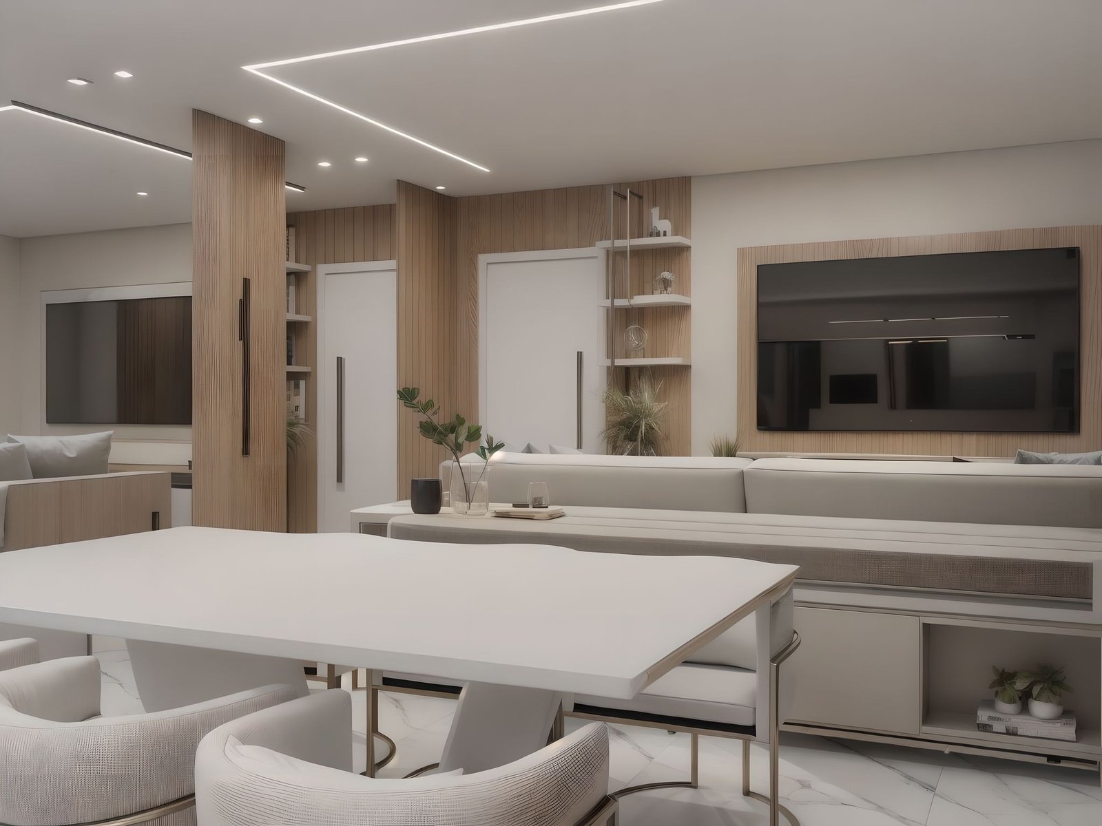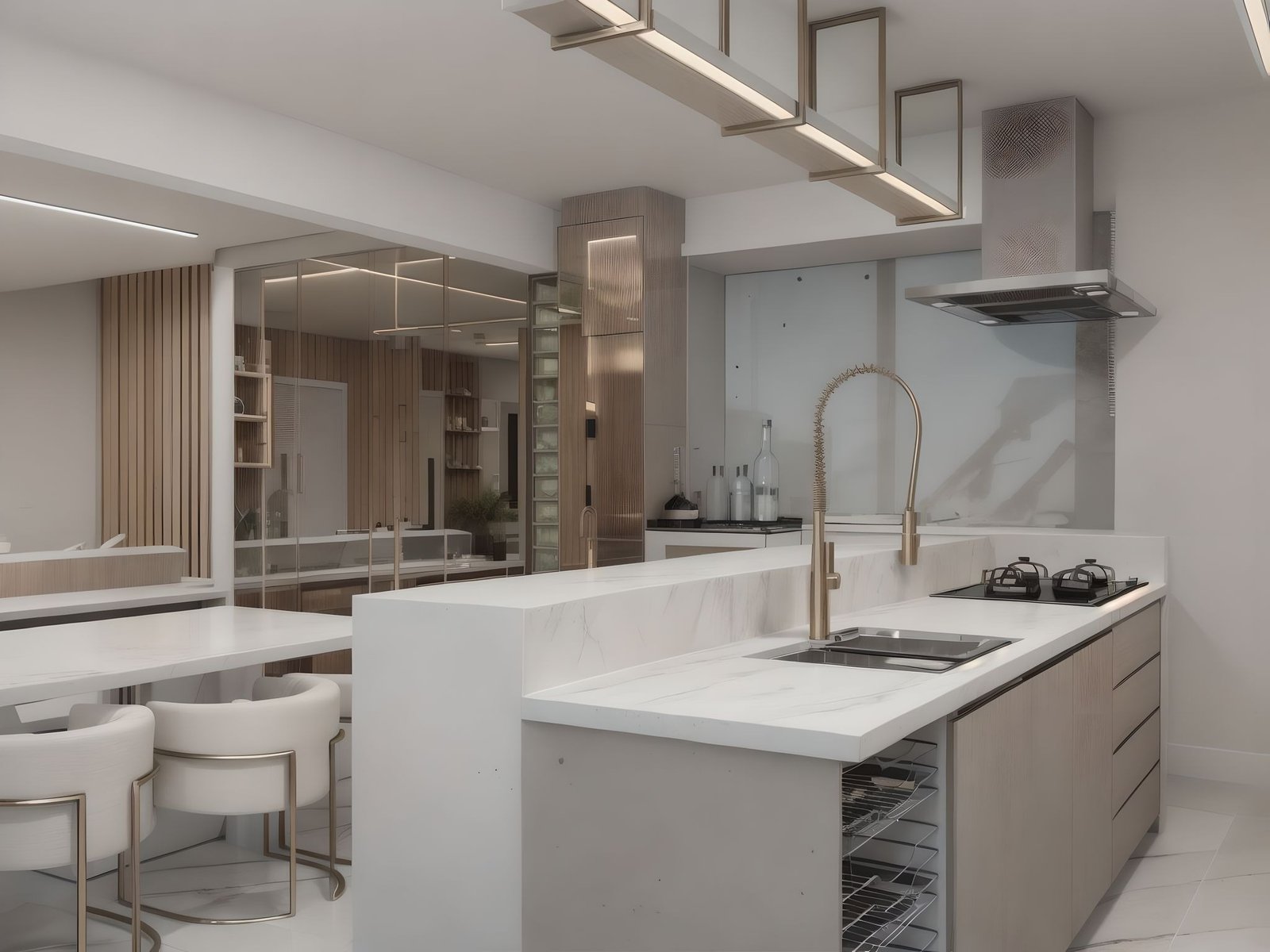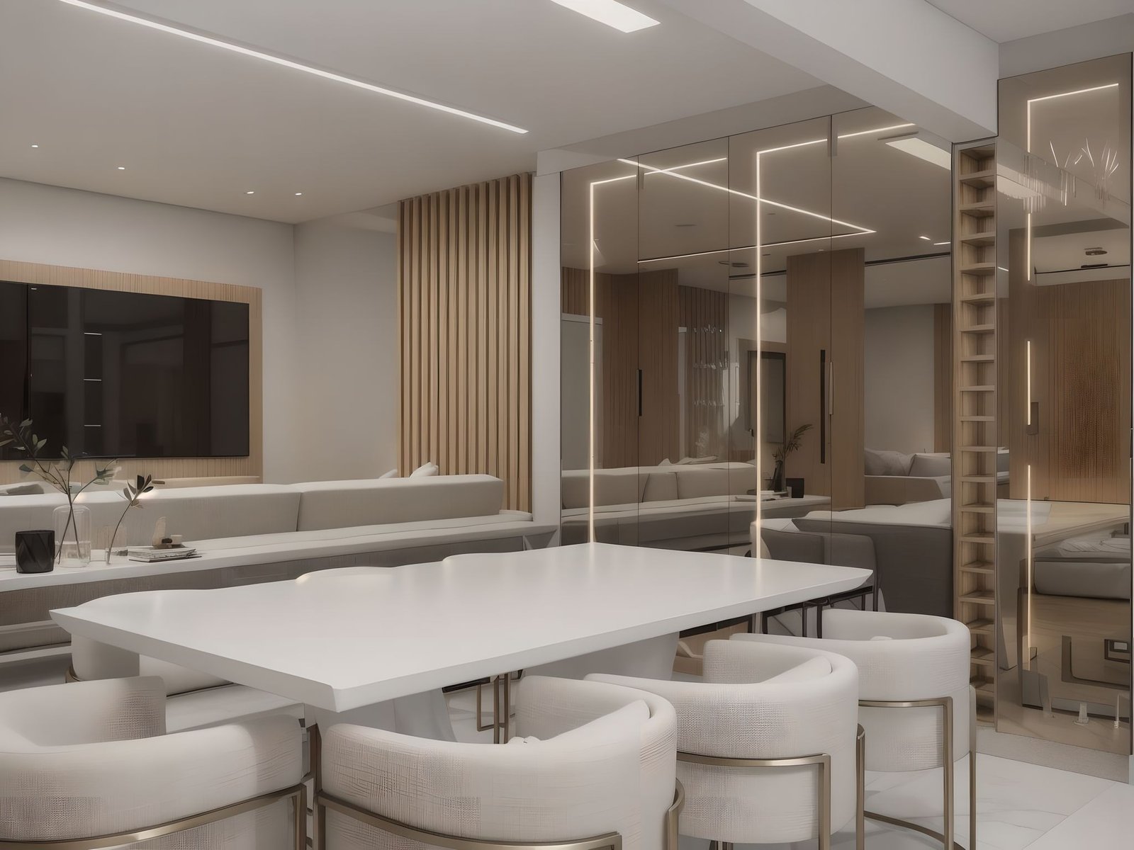 Foi uma experiência incrível ver a emoção dos nossos clientes refletida neste projeto, cheio de personalidade! A cozinha integrada apresenta um estilo contemporâneo clean, com acabamentos claros e atemporais. Para realçar a cristaleira, decidimos incorporar uma iluminação vertical, destacando indiretamente as louças e incluindo uma adega para otimizar o espaço. A integração dos ambientes não só cria um espaço aconchegante, mas também favorece a circulação. A neutralidade e textura adicionadas ao ambiente são a chave para torná-lo charmoso por completo!